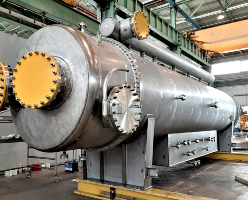 Our feedwater heaters are shell-and-tube heat exchangers that reliably heat feedwater or district heating water by means of steam. We have well proven experience with a wide range of applications enabling us to offer best solutions in regards to reliability and efficiency. We design and manufacture feedwater heaters for nearly all kind of applications.
