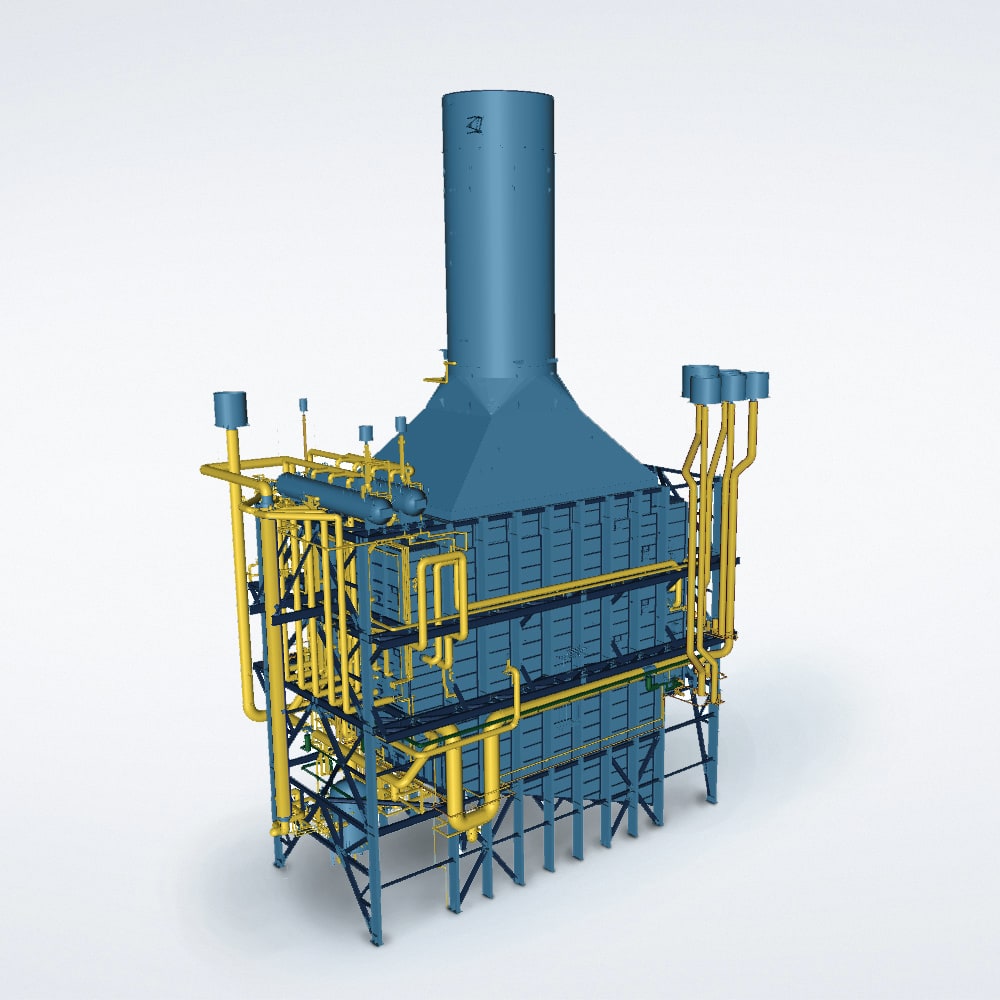 The WHRU is developed on the same design platform as the Vertical OTSG/DTSG which are used for steam generation and are described below. The vertical gas path design of NEM offers unique modularized construction philosophy resulting in reduced installation time and costs. This modular philosophy applies to our entire design platform in this range.